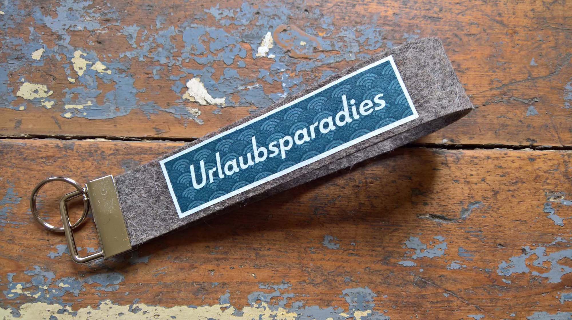 Bedrucktes Schlüsselband aus Filz, Schlaufe insgesamt ca. 33cm lang