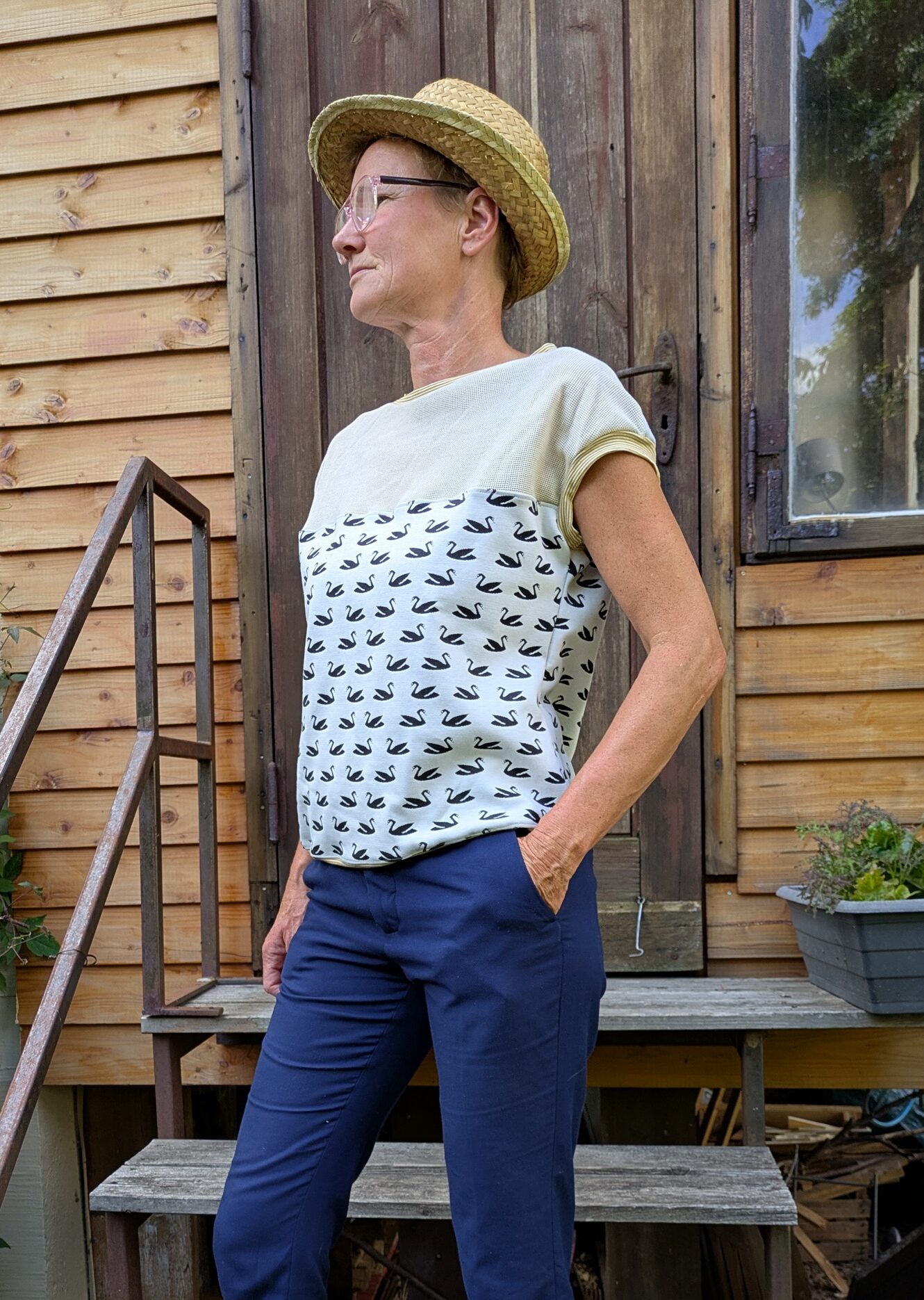 Ärmel- und Bundabschluß aus Viscosejersey. Model 172 cm, Gr.36/38 Wunschgröße einfach bei Bestellung ins Bemerkungsfeld
