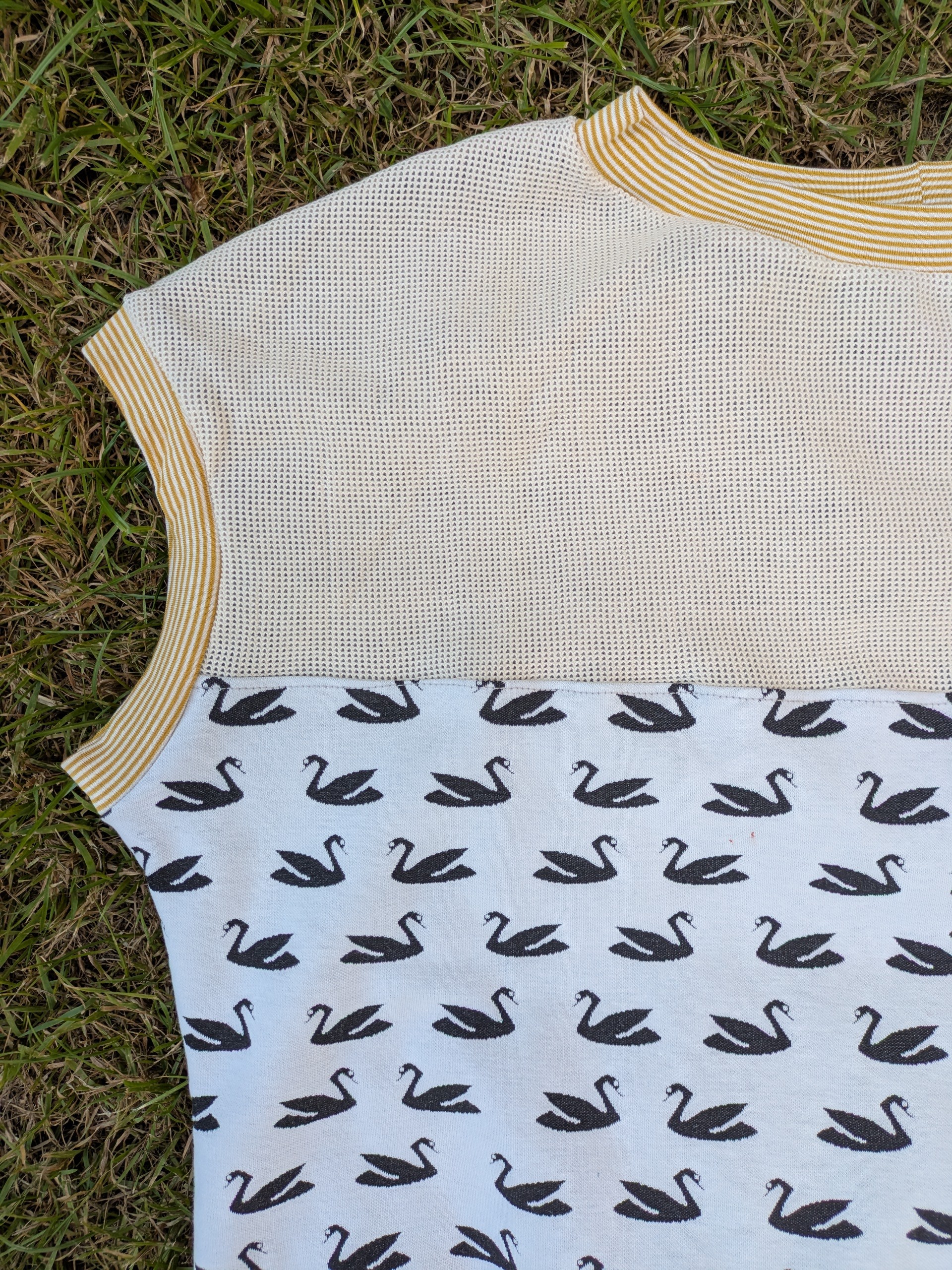 Shirt aus Mischgewebe (PE/ VI/ EA) mit durchgewebten Schwänen und Mesh.